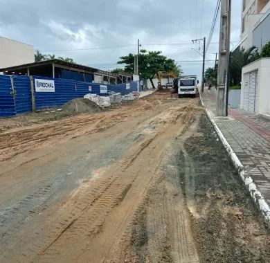 GALERIA DE FOTOS Obra de pavimentação asfáltica, adequação de drenagem pluvial e sinalização viária da Rua Flávio José Zandavalli (Rua 2400), localizada no bairro Centro – Balneário Piçarras/SC