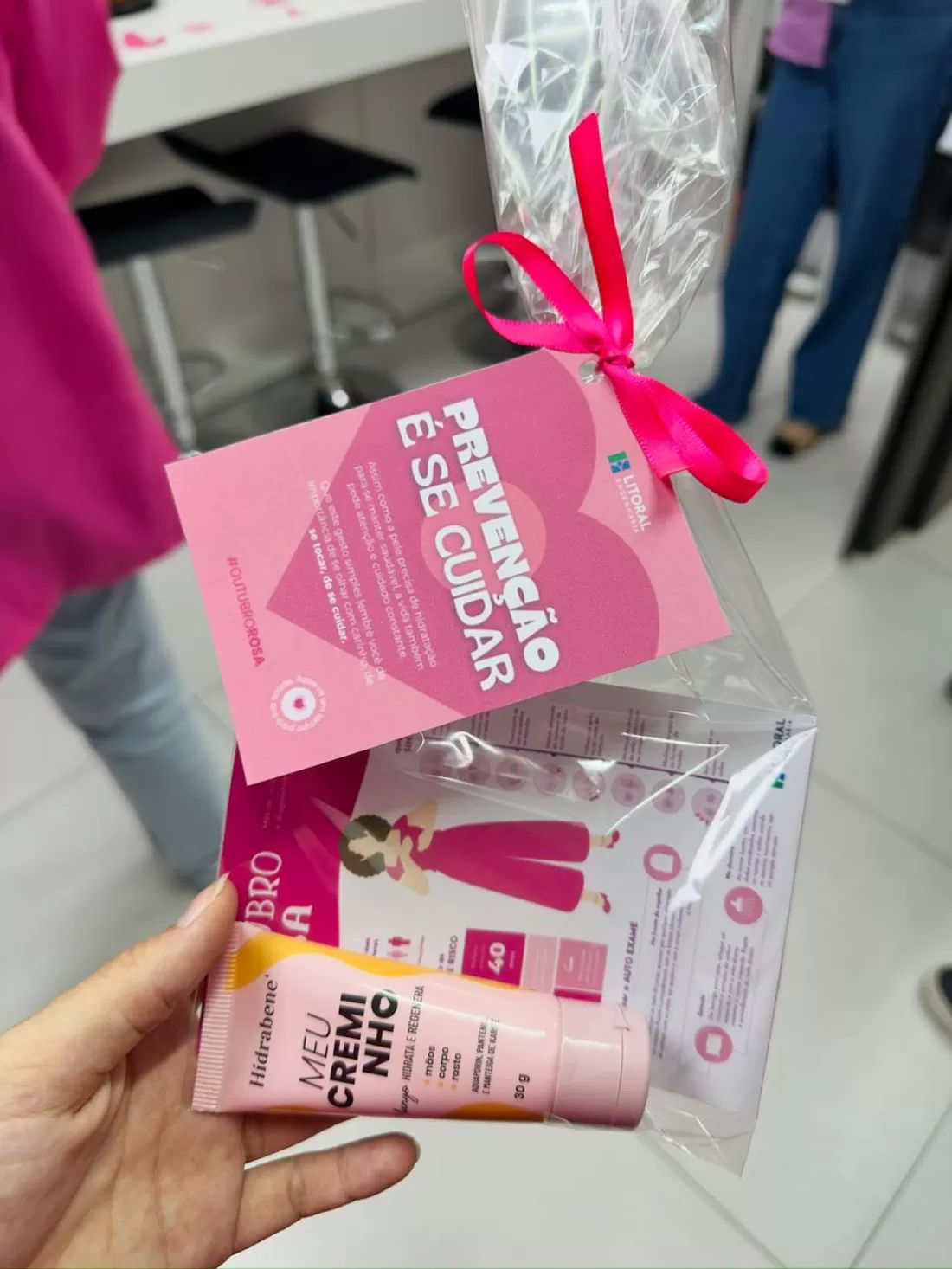 Durante o encontro, nossas colaboradoras receberam um kit de autocuidado, contendo um mini hidratante e materiais informativos sobre o autoexame e os sinais de alerta do câncer de mama. O gesto, embora simples, reforça uma mensagem essencial: a prevenção começa com atenção, informação e carinho consigo mesma.